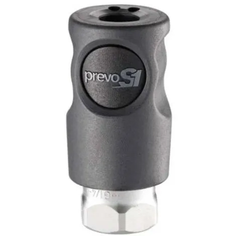 Compatible avec les raccords de profils ISO 6150 C 6 mm, ce raccord pour air comprimé PrevoS1 se déconnecte et se décompresse en toute sécurité avec un seul bouton. Pour une étanchéité parfaite et un débit d’air optimisé, il est doté d’un joint de vanne aérodynamique.